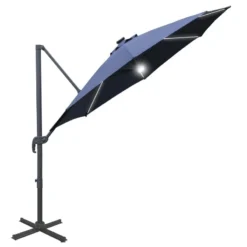 Outsunny 3m LED Cantilever Parasol with Base and Solar Lights – Blue – 84D-104NU