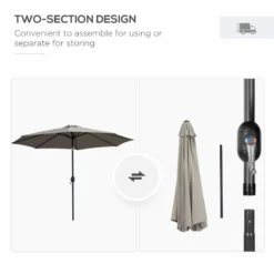 Outsunny 3m Patio Parasol with Tilt and Crank – Light Grey – 840-070GY