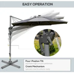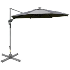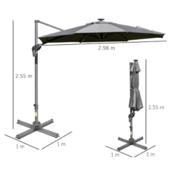 Outsunny 3m Solar LED Cantilever Adjustable Parasol with Base – Light Grey – 84D-110GY