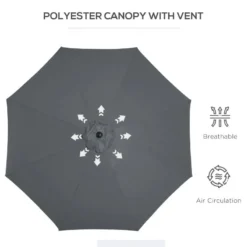 Transform your outdoor experience with the Outsunny Garden Umbrella. Designed to provide sun protection, this umbrella features a sturdy steel pole and adjustable-angle canopy, covering a large area for optimal shade. The eight steel ribs ensure extra strength and stability. With a convenient crank handle, the umbrella can be easily opened, closed, and adjusted to your desired angle. Its portable, foldable, and lightweight design makes it convenient to use and store. Please note that the base is not included, and it is recommended not to leave the umbrella open during heavy rain. Upgrade your garden or patio with this durable and versatile umbrella.