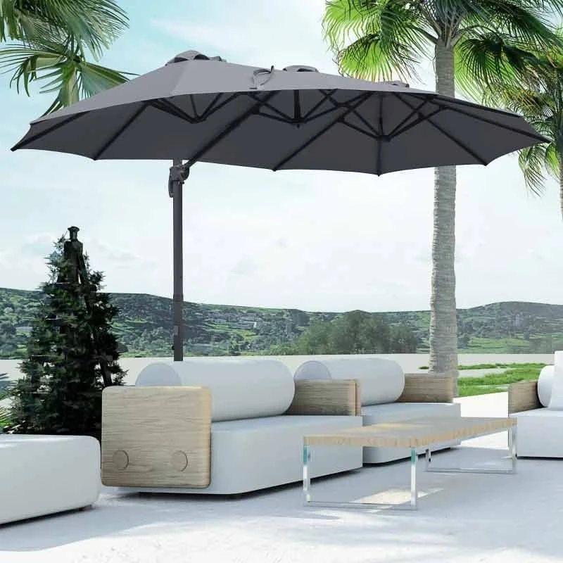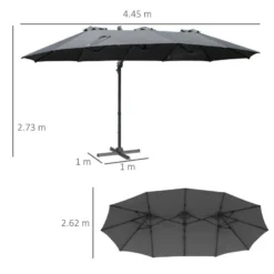 Outsunny 4.5m Large Double-Sided Rectangular Parasol with Crank Handle 360° Cross Base – Grey – 84D-183CG