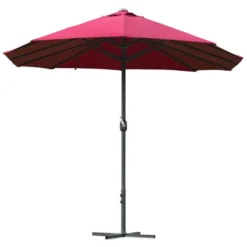 Outsunny 4.6m Double-Sided Crank Sun Shade with Cross Base – Wine Red – 84D-031V02WR