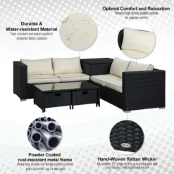 Outsunny 4 Piece Rattan Garden Furniture Set – Black – 860-104V70BK