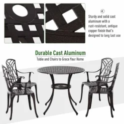 Outsunny 4-Seater Cast Aluminium Outdoor Garden Table & Chair Set – Brown – 84B-346