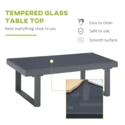 Check out this Outsunny 4-piece metal garden furniture set with 2 armchairs, 2-seater sofa and a coffee table that we can be sure will compliment your outdoor living space perfectly. The modern designs mean you can tuck the furniture set into a nice corner of your garden making the most out of your space. Constructed from a powder coated metal frame, this garden furniture set is durable, strong and will last for years to come. The extra wide seats, high back and arm rests will keep you and a few friends supported and completely comfortable for hours on end, complete with a slatted design to drain water and circulates air to keep you cool on warm summer days. The thick cushions, each have a zip making them easy to remove to wash and maintain yourself at home. The coffee table is light weight to be manoeuvred to your preferred position, even with the glass top finish and is and easily cleaned with a damp cloth. If you are looking for a relaxing and modern metal garden furniture set, this is the one for you.