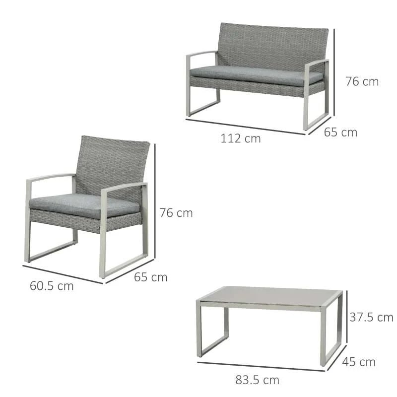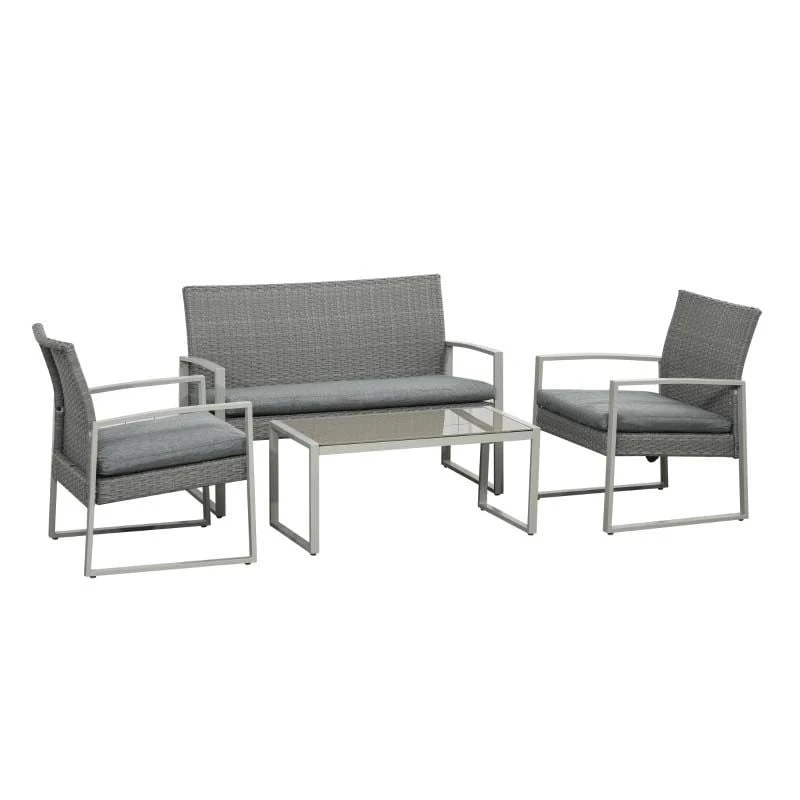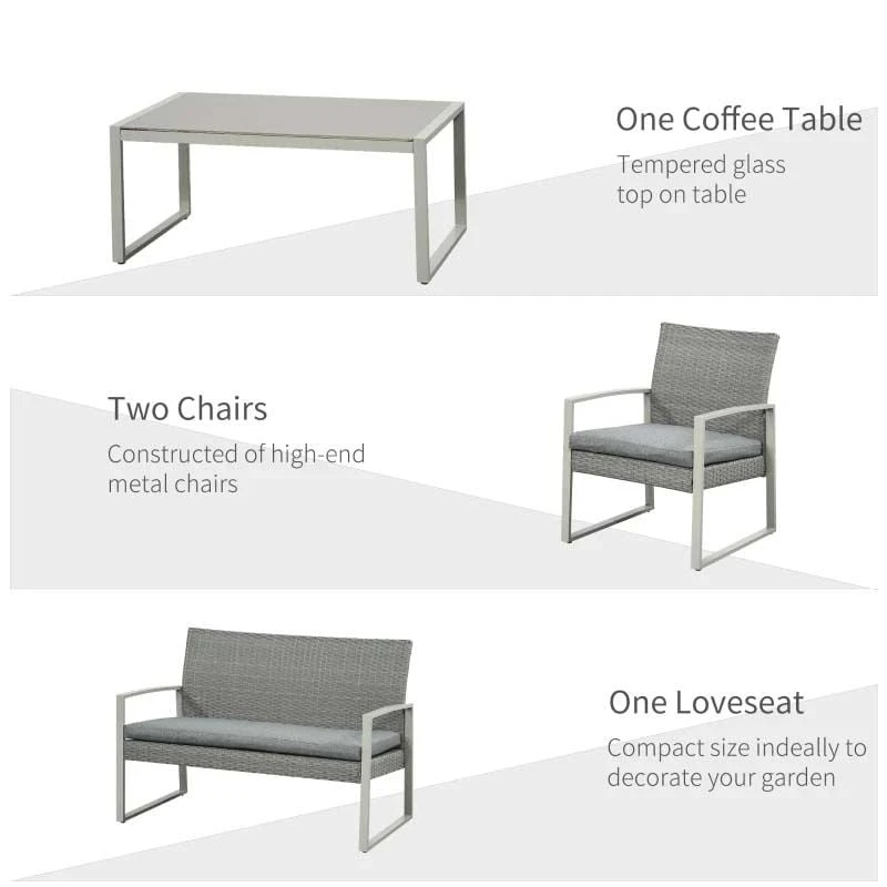 Outsunny 4-Seater Rattan Garden Furniture Set – Grey – 841-174V70