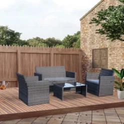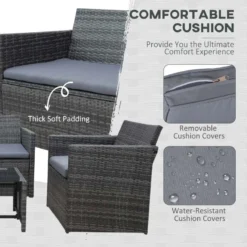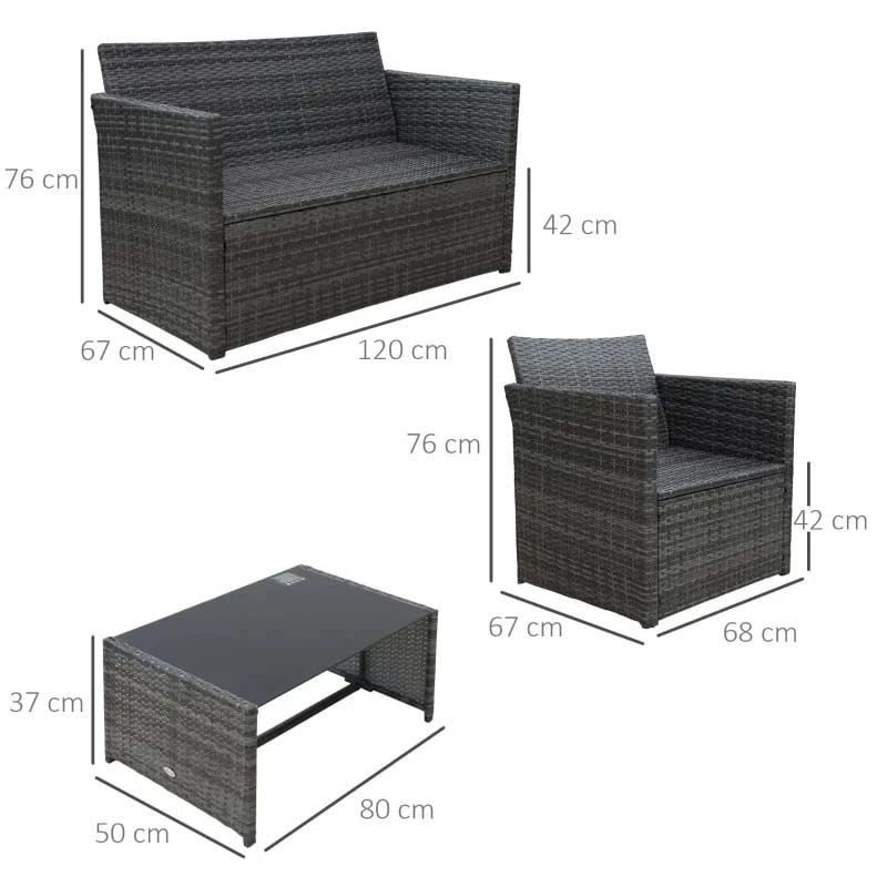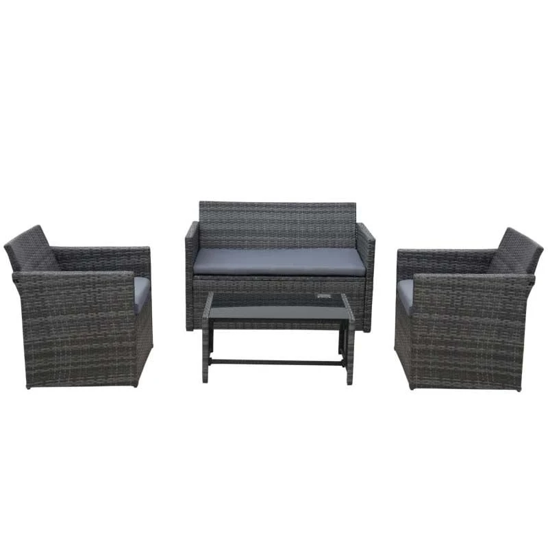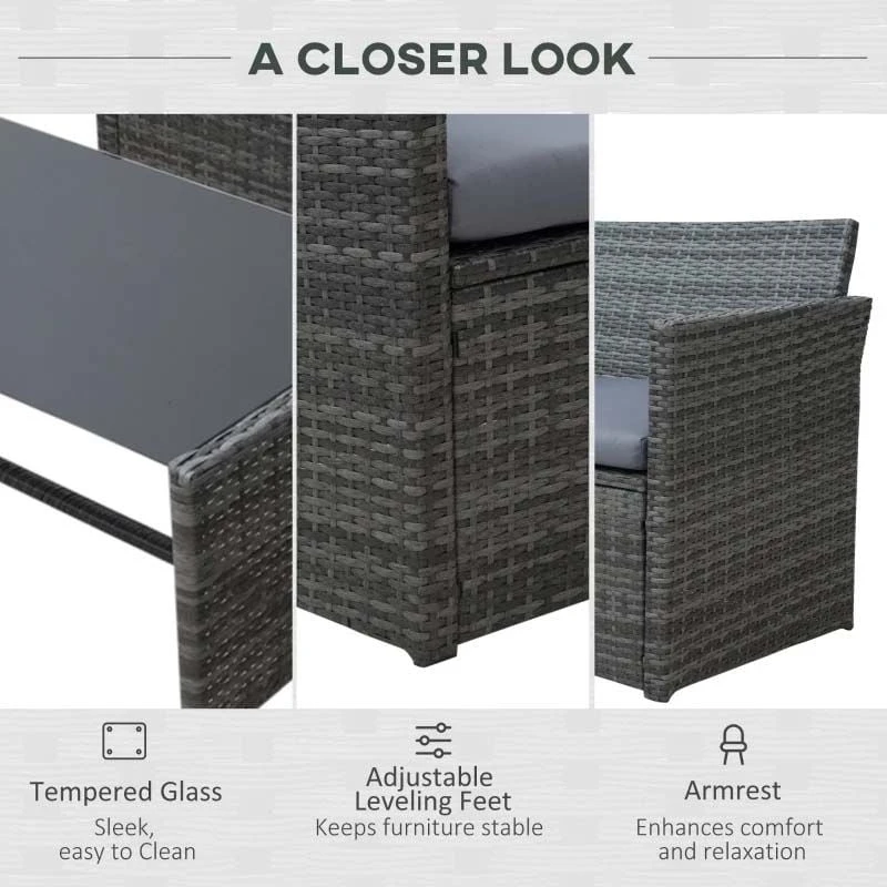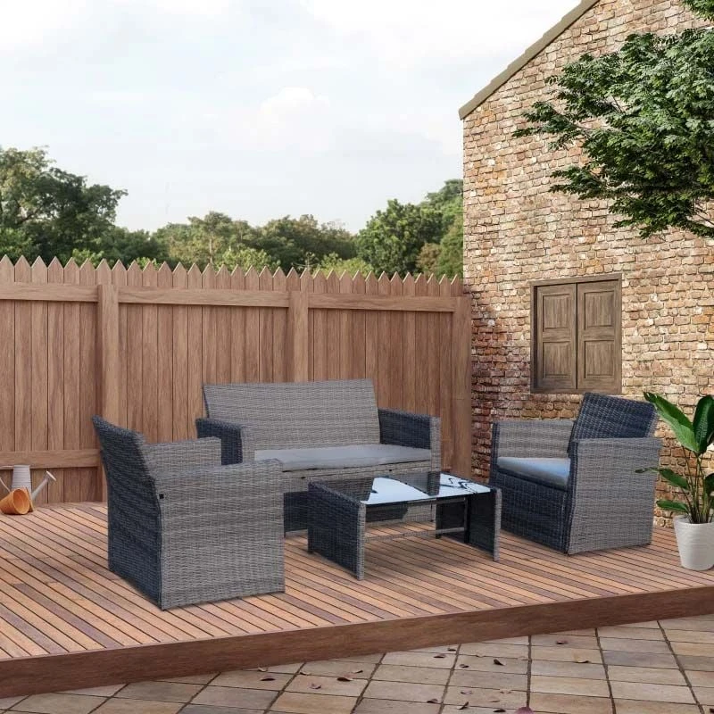 Outsunny 4-Seater Rattan Garden Furniture Set – Grey – 860-064V01GY
