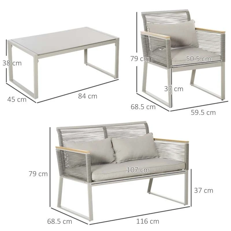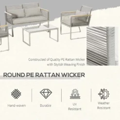 Outsunny 4-Seater Rattan Garden Furniture Set – Grey – 867-100