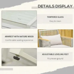Check out this Outsunny 4-piece rattan garden furniture set with a 2-seater sofa, 2 armchairs and coffee table that we can be sure will compliment your outdoor living space perfectly. The modern designs mean you can tuck the furniture set into a nice corner of your garden making the most out of your space. Constructed from a metal frame and covered in a PE rattan wicker, this garden furniture set is durable, strong and will last for years to come. The extra wide seats, high back and arm rests will keep you and a few friends supported and completely comfortable for hours on end. The thick cushions, each have a zip making them easy to remove to wash and maintain yourself at home. The coffee table is light weight so is easily manoeuvred to your preferred position, even with the glass top finish. If you are looking for a comfortable and stylish rattan garden furniture set with a beautiful weave design and finished off with wood effect armrests, this is the one for you.