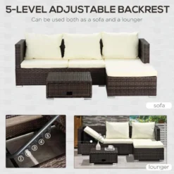Check out this Outsunny 4-seater rattan garden sofa set that we can be sure will compliment your outdoor living space perfectly. The modern design mean you can tuck the sofa into a nice corner of your garden making the most out of your space. Constructed from a metal frame and covered in a PE rattan wicker, this garden sofa set is durable, strong and will last for years to come. The extra wide seats, high back and arm rests will keep you and a few friends supported and completely comfortable for hours on end. Featuring an adjustable back rest, you can move yourself over 5 levels for maximum comfortability. The thick cushion, each have a zip making them easy to remove to wash and maintain yourself at home. The coffee table is light weight so can be manoeuvred to your preferred position, even with the elegant glass top finish, it is also complete with under storage perfect to keep garden toys or blankets. Use the stool to put your feet up or as an additional seat to entertain a friend. If you are looking for a relaxing and modern garden sofa set, this is the one for you.