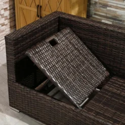 Outsunny 4-Seater Rattan Garden Furniture Set With Storage – Brown – 860-091V70BN