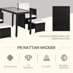 Outsunny 4-Seater Rattan Table & Chair Set – Black & Creamy White – 863-009BK