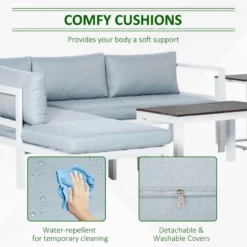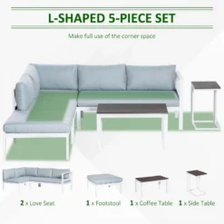 Outsunny 5 Piece L-shaped Garden Furniture Set – Grey/White – 84B-817V70WT