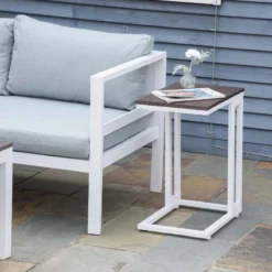 - Coffee table and side table with wood-like tabletop creates a natural look