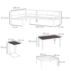 - Weight Capacity: (sofa) 240kg, (Footstool) 115kg, (coffee table) 25kg, (side table) 15kg