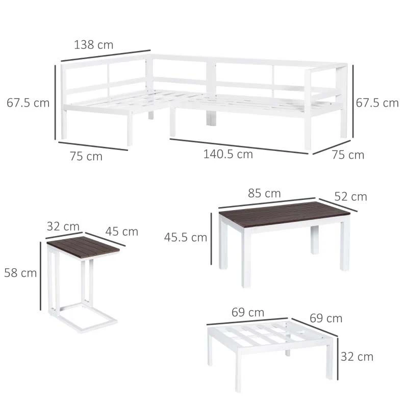 Check out this Outsunny 5pcs garden furniture set, complete with L shaped sofa, coffee table, c-shape side table and foot stool perfect for you and your family and friends to enjoy each-others company in the comfort of your own garden. The included cushions on the seat and back rests will keep you supported and comfortable for hours on end and the zipper covers are easily removed to be washed and maintained. The coffee and side table is ideal for resting multiple drinks and snack bowls or to even eat dinner around, they are also lightweight so can be manoeuvred to your preferred position. Constructed from a strong metal frame, this garden set is durable, weather resistant and will last for years to come. The slatted seat design will drain water, extending this garden furniture set lifespan. We can be sure the modern design is ideal for any outdoor living space and will compliment your garden perfectly.
