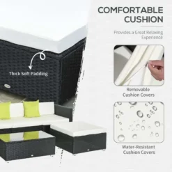 Outsunny 5 Piece Rattan Garden Furniture Set – Cream White/Black – 860-017BK
