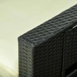 Check out this stunning Outsunny rattan reclining garden sun lounger set that we can be sure will compliment your outdoor living space perfectly. Constructed from a high-quality metal frame and wrapped in a rattan wicker, this sun lounger set is strong, durable, easy to clean and will last for years to come. You and a friend can sit back using the 5-level reclining back rest function for ultimate relaxation, the added cushions will keep you both supported and comfortable for hours on end. The handy middle table with cupboard, which is handy for storing pillows, blankets and much more and finished off with an elegant glass top, not forgetting the pop up side tables on each seat that are ideal for resting your drink and snack bowls. Put your feet up on the foot stools with added storage or use as additional seating to entertain a few others. If you are looking for a beautifully designed rattan sun lounger set complete with 2 scatter cushions, this is the one for you.