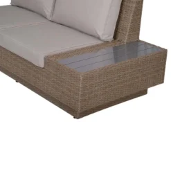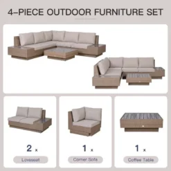 Check out this Outsunny 4pcs garden furniture set, complete with 2 loveseats, 2 side tables, corner seat and square coffee table perfect for you and your family and friends to enjoy each-others company in the comfort of your own garden. The included cushions on the seat and back rests will keep you supported and comfortable for hours on end and the zipper covers are easily removed to be washed and maintained. The compact side tables and coffee table is ideal for resting multiple drinks and snack bowls, the coffee table is also lightweight so can be manoeuvred to your preferred position. Constructed from a strong metal frame, this garden set is durable, weather resistant and will last for years to come. The side and coffee tabletops are finished off with an elegant wood effect so we can be sure the modern design is ideal for any outdoor living space and will compliment your garden.