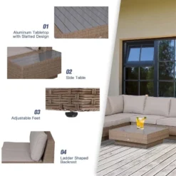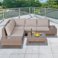 Outsunny 5-Seater Rattan Furniture Garden Set – Brown / Beige – 860-075