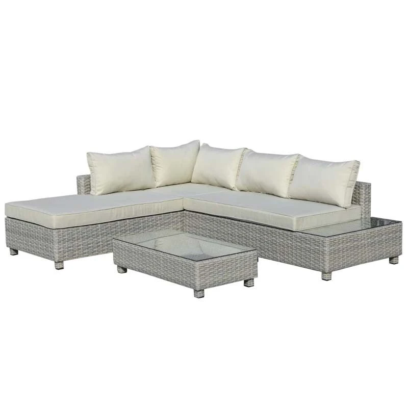 - 3-piece outdoor rattan sofa set come with a chaise lounge, double sofa and a tea table
