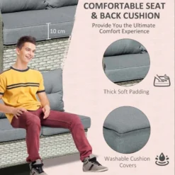 Outsunny 5-Seater Rattan Garden Furniture Set With Cushions – Grey – 860-184