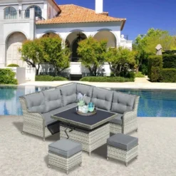 - Modern 6-piece detachable outdoor furniture set offers stylish and comfortable lounging at its best