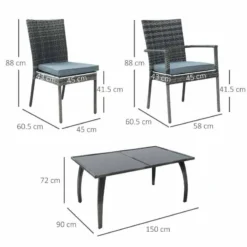 Outsunny 6 Seater Dining Rattan Wicker Table & Chairs Set – Grey – 861-026GY