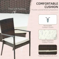 Turn your patio or deck into a causal dining area with this 7 pieces garden dining furniture from Outsunny. Fashioned from a reinforced galvanized steel frame and a beautiful wicker material, the mildew resistant wicker and detachable cushions allow for easy cleaning and maintenance. This beautifully designed wicker dining furniture set will bring instant contemporary charm and elegance to your dining area.