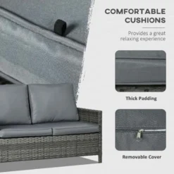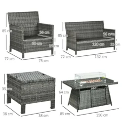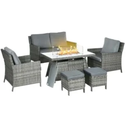 Outsunny 6-Seater Rattan Fire Pit Garden Furniture Set – Grey – 860-291V71GG