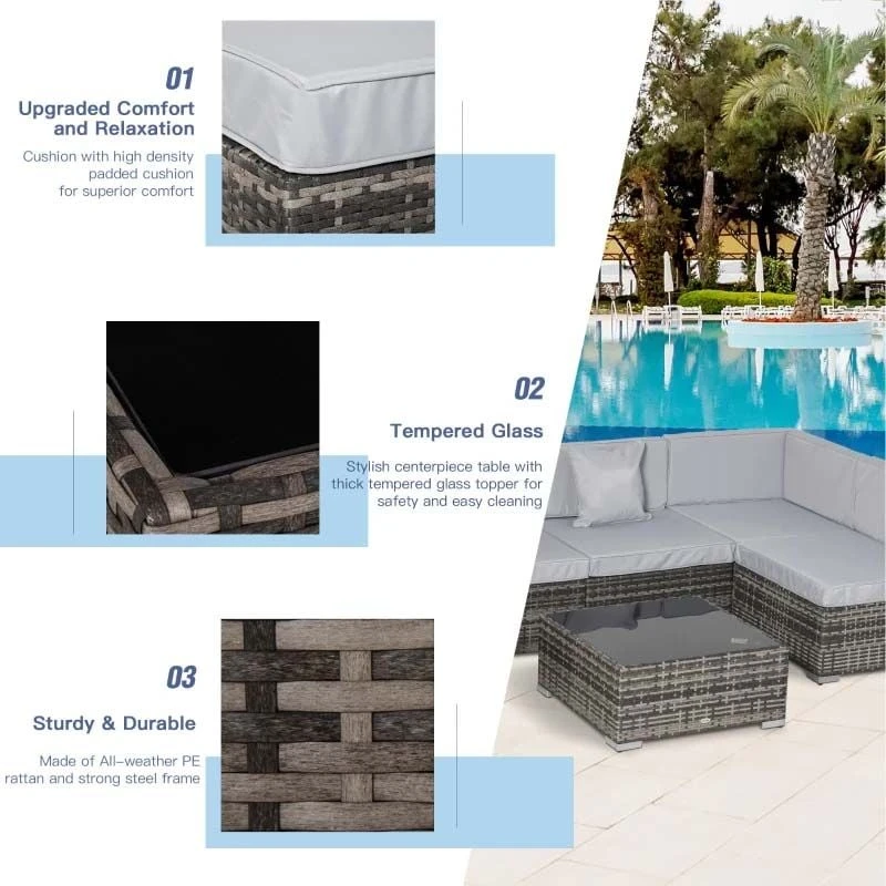 Outsunny 6-Seater Rattan Garden Furniture Set – Grey/Beige – 860-027GY