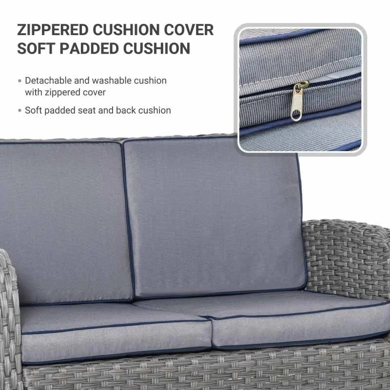Outsunny 6-Seater Rattan Wicker Dining Table & Chairs Set with Cushions – Grey – 860-136V70