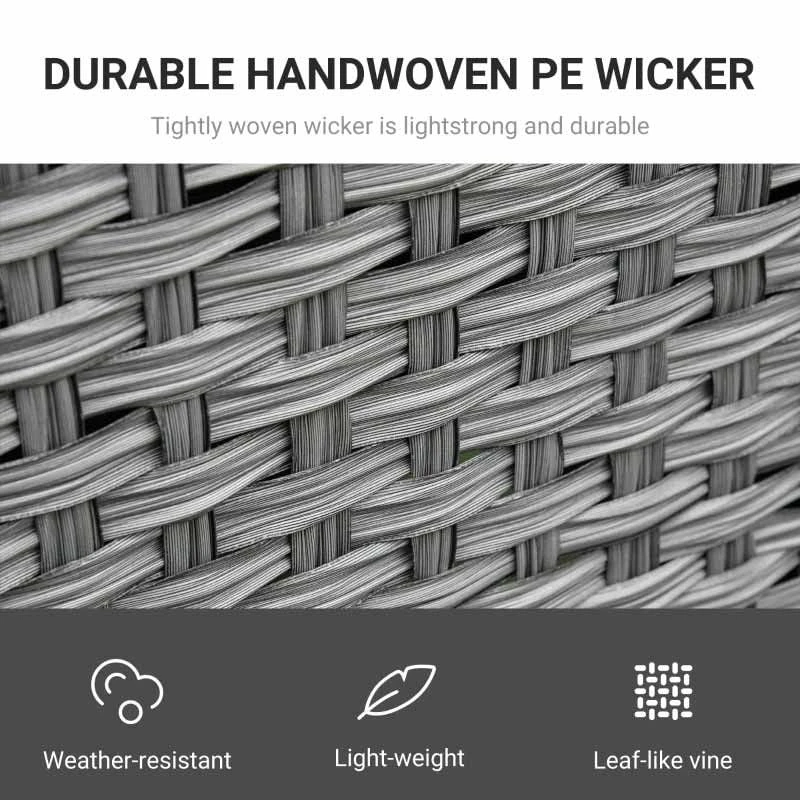 When it comes to enjoying quality time with family and friends, this Outsunny 6-PCs garden rattan furniture set is all you need. This set holds up to six people with the two armchairs, two footstools and two-seater sofa. The table provides spacious dining room, whilst the footstools are great for relaxingly elevating your feet and legs. The Leaf-like PE wicker is beautiful, making this set a unique addition to outdoor areas.
