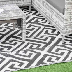 Outsunny 6 x 9ft Reversible Outdoor Rug – Black & White – 844-480