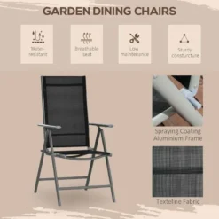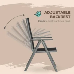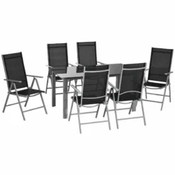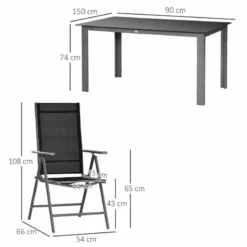 Outsunny 7 Piece Dining Table and Folding Reclining Chairs Set Black – 84G-100V00BK