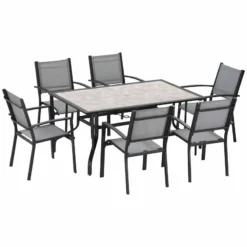 Outsunny 7 Piece Garden Dining Armchairs and Table Patio Furniture Set – Black & Grey – 84B-839