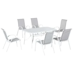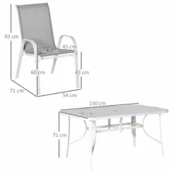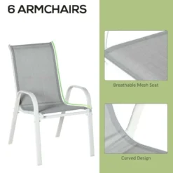 Outsunny 7 Piece Garden Dining Table and Chairs Patio Furniture Set – Grey – 84B-921V02