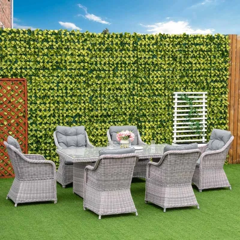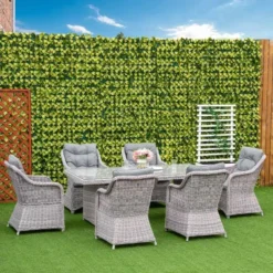 This Outsunny corner dining table set is the perfect solution to all your outdoor dining times. The set comes with six large armed chairs and a high-rise table. The aluminium frame is wrapped in rattan, and a plastic wicker for durability, and the ultimate garden look.