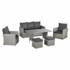 Create fun and memorable moments with family and friends with this 6 seater rattan garden furniture from Outsunny. Perfect for any season, this outdoor garden sofa holds up to seven people. The table provides spacious dining space. The conservatory furniture is finished with comfortable cushions which will leave you wanting to spend all day in.