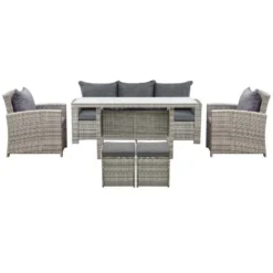 Outsunny 7-Seater Rattan Dining Set With Cushions – Grey – 860-069