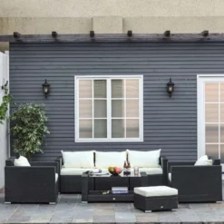 Outsunny 7-Seater Rattan Garden Furniture Set – Grey/Cream – 841-159