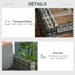 - Materials: Steel, Polyester, Foam, PE Rattan, Tempered Glass