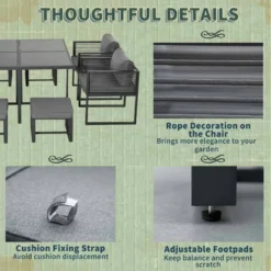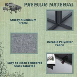 Outsunny 9 Piece Garden Dining Aluminium Cube Table Chairs & Footstool Set – Grey – 84B-657