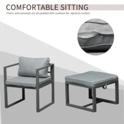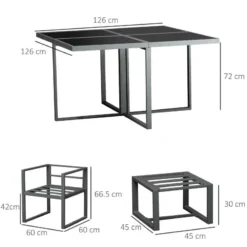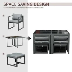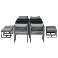 Outsunny 9 Piece Patio Dining Sets with Ottoman Table – Dark Grey – 84B-479V70