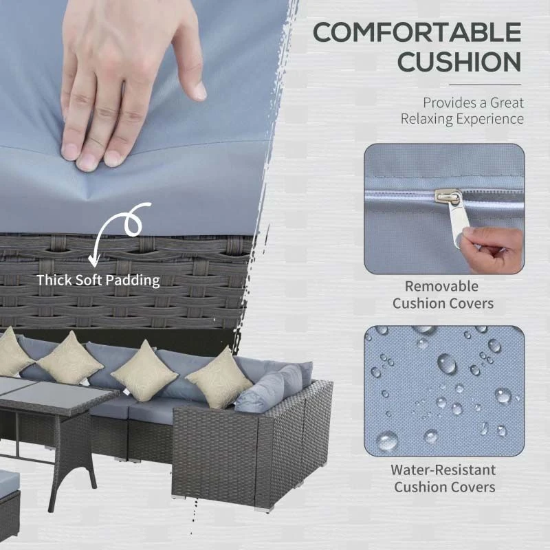 Outsunny 9-Seater Rattan Garden Furniture Set With Cushions – Grey/Blue – 860-014