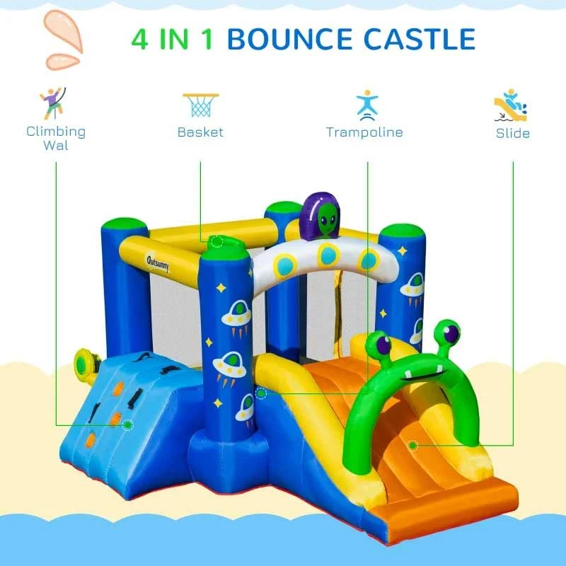 Outsunny Alien 4-in-1 Large Bouncy Castle with Slide – 3.2 x 2.4 x 2m – 342-056V70