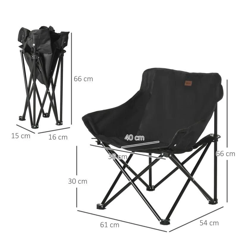 Outsunny Camping Chair with Carrying Bag & Storage Pocket – Black – A20-292V00BK