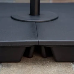 The Outsunny Cantilever Parasol Base is the ideal way to keep your parasol securely in place. This base is made of weather-resistant PP plastic and is specifically intended for Outsunny Cantilever banana parasols. Each of its four parts can be filled with up to 20kg of sand, giving it the essential solidity, it needs. The removable lid makes filling and draining simple. The click design allows for simple and quick attachment to your cross base (cross base not supplied). This solid and efficient base requires assembly.