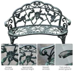 Outsunny Cast Aluminum Garden Bench – Antique Green – 01-0794
