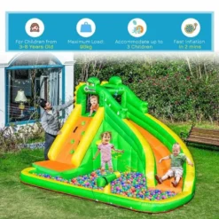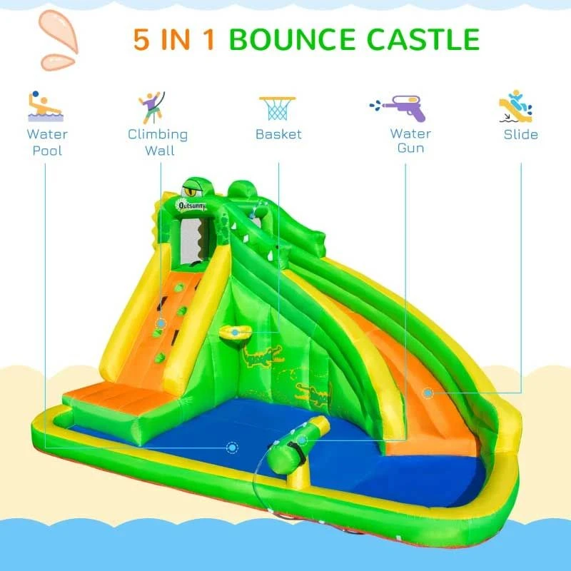 Outsunny Crocodile 5-in-1 Large Bouncy Castle with Slide & Pool – 3.85 x 2.85 x 2.25m – 342-050V70